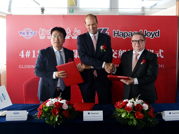 Thereafter, Mr. Zhang Yuyong,  Dr. Maximilian Rothkopf and Mr. Lutz-Michael Dyck signed the delivery documents at the wheel house. The vessel was smoothly and successfully delivered by us and accepted by the Owner.
