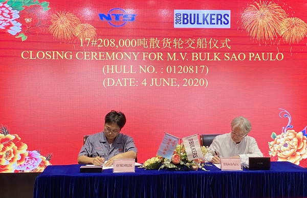 On June 4, 2020, the closing ceremony for 17# 208,000 DWT Bulk Carrier was held at the meeting room on 8th floor of New Times Office Building. Our CEO Mr. Liu Haijin, Executive General Manger Mr. Zhang Yuyong and the representative from 2020 Bulkers Ltd. Mr. Davor Radic attended this ceremony. The vessel was smoothly and successfully delivered by us and accepted by the Buyer.
