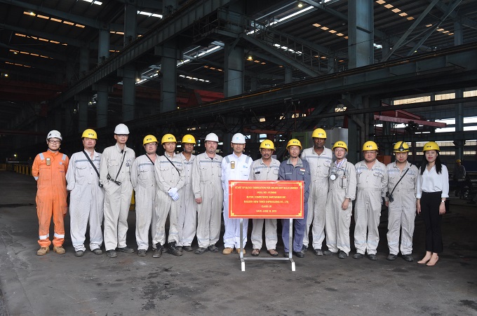 On 18 June, 2019, the block fabrication of No.6 208,000DWT Bulk Carrier was carried out at the cutting workshop of NTS. Our General Manager Assistant Mr. Ding Baiying and representatives from the owner FRONTLINE and LR classification society attended this event.