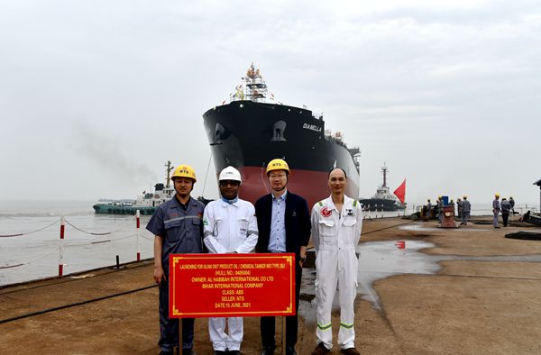 On June 15, 2021, the launching ceremony of two units of 50,000 DWT Product Oil/Chemical IMO Type 2&3  Tankers with Hull Nos.0405004 and 0405005 has been carried out successfully by New Times Shipbuilding Co., Ltd. Our CEO Mr. Liu Haijin, General Manager Assistant Mr. Liu Feng and representatives from the owner BIHAR INTERNATIONAL COMPANY and ABS Class attended and witnessed the ceremony together.