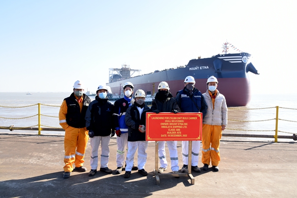 On December 18, 2022, the launching ceremony of one 210,000 DWT Bulk Carrier bearing builder's hull no.0120835 has been carried out successfully by New Times Shipbuilding Co., Ltd. Our Chairman Mr. Yuan Kaifei, CEO Mr. Liu Haijin, Executive Deputy General Manager Mr. Zhang Yuyong, the representatives from Himalaya Site Manager Mr. Davor Radic together with his site members and representatives from ABS classification society attended and witnessed the ceremony together.
