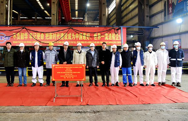 On February 15, 2022, the Steel Cutting Ceremony of one 50,000 DWT Product Oil/Chemical Tanker (IMO Type 2) with  Hull No.0405029 has been carried out successfully by New Times Shipbuilding Co., Ltd. Our General Manager Assistant Mr. Xu Zhenyu, the representatives from the owner CDB Leasing (International) Co., Ltd. and representatives from the classification societies DNV and CCS attended and witnessed the ceremony together.