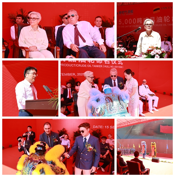 On 15 September, 2025, we held naming ceremony for 56# 115,000 DWT Crude/Product Oil Tanker bearing builder's hull no.0311556. The company's Executive Deputy General Manager Mr. Zhang Yuyong, the representative from TMS Tankers Ltd Mrs. Eugenia Papapontikou, LR Service Delivery Manager of Central China Mr. Li Yi and other VIP guests attended this ceremony.