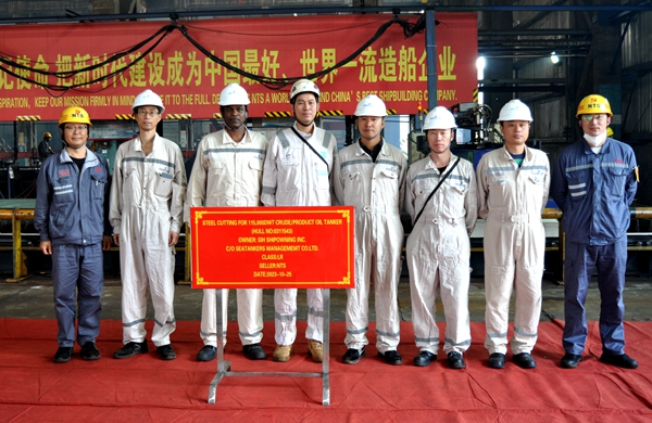 On October 25, 2023, the steel cutting of one 115,000 DWT Crude/Product Oil Tanker bearing builder's hull no.0311543 has been carried out successfully by New Times Shipbuilding Co., Ltd.. The representatives from shipyard, Frontline Site Team and LR classification society attended and witnessed this event.