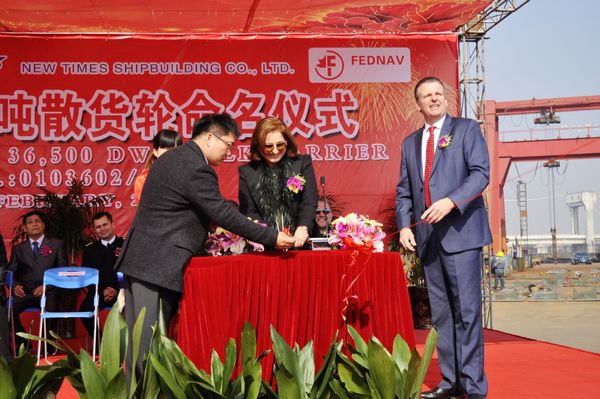 On Feb. 14th, the naming ceremony of No.2 and No.3 36,500 DWT Bulk Carriers was held ceremoniously in our shipyard. Executive Vice President Mr. Zhang Yuyong conducted this ceremony, our CEO Mr. Liu Haijin and CEO of Intership Navigation Co. Ltd. Mr. Dieter Rohdenburg made a warm speech. These two vessels are named as "Federal Ruhr" and "Federal Mosel" respectively.
