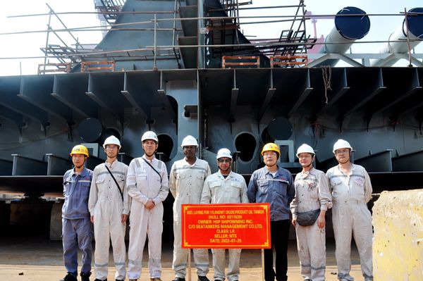 On July 25, 2022, the keel laying of one 115,000 DWT Crude/Product Oil Tanker bearing builder's hull no. 0311539 has been carried out successfully by New Times Shipbuilding Co., Ltd.. Our Executive Deputy General Manager Mr. Zhang Yuyong, General Manager Assistant Mr. Xu Zhenyu, the representatives from Frontline Site Manager Mr. Raman together with the representatives from LR classification society attended and witnessed this event.