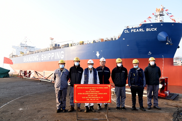 On January 12, 2023, the launching ceremony of two units of 50,000 DWT Product Oil/Chemical Tankers (IMO Type 2) with Hull Nos.0405030 and 0405031 has been carried out successfully by New Times Shipbuilding Co., Ltd. Our Chairman Mr. Yuan Kaifei, CEO Mr. Liu Haijin, Executive Deputy General Manager Mr. Zhang Yuyong and representatives from the owner CDB Leasing (International) Co., Ltd. and representatives from the classification societies DNV and CCS attended and witnessed the ceremony together.
