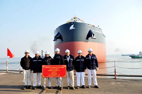 On December 16, No.25 208,000 DWT Bulk Carrier launched successfully from NTS Drydock. Our CEO Mr. Liu Haijin, Executive General Manger Mr. Zhang Yuyong and the representatives from the Owner H-Line Shipping and KR Class attended and witnessed the ceremony together.