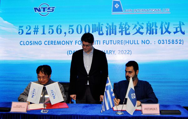 On 10 January, 2022, the closing ceremony for 52# 156,500 DWT Oil Tanker with Builder's Hull No.0315852 was held at the meeting room on 8th floor of New Times Office Building. Our Executive Deputy General Manager Mr. Zhang Yuyong, Deputy General Manager & Executive Director Mr. Yuan Heng and the owner's representative were present, and the members from owner's head office also witnessed this ceremony through video. The vessel was smoothly and successfully delivered by us and accepted by the Owner.