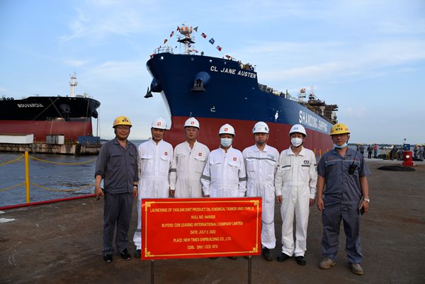 On July 2, 2022, the launching ceremony of one 50,000 DWT Product Oil/Chemical Tanker (IMO Type 2) with Hull No.0405028 has been carried out successfully by New Times Shipbuilding Co., Ltd. Our Chairman Mr. Yuan Kaifei, CEO Mr. Liu Haijin, Executive Deputy General Manager Mr. Zhang Yuyong and representatives from the owner CDB Leasing (International) Co., Ltd. and representatives from the classification societies DNV and CCS attended and witnessed the ceremony together.