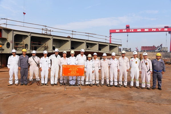 On September 23, 2022, the keel laying of one 210,000 DWT LNG DUAL FUEL Bulk Carrier with Hull No.0120835 has been carried out successfully by New Times Shipbuilding Co., Ltd.. Our Production Manager Mr. Chen Yuefeng, the representatives from Himalaya Site Manager Mr. Davor Radic together with his site members and the representatives from ABS classification society attended and witnessed this event.