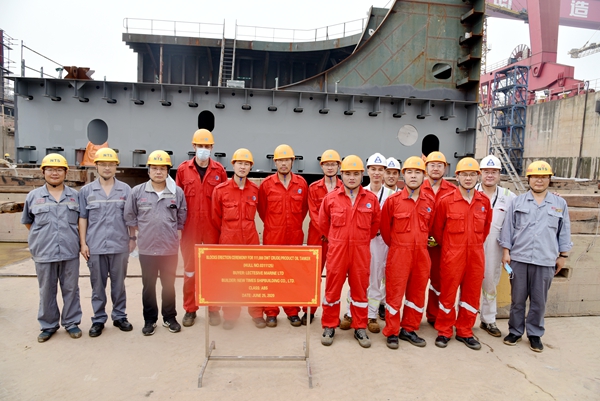 On June 25, 2020, the block erection ceremony of No.25 111,000 DWT Crude/ Product Oil Tanker was held in Drydock No.1. Our Executive General Manger Mr. Zhang Yuyong and Mr.Ni Jie as the Site Manager and representatives from the owner and ABS classification society attended this event.