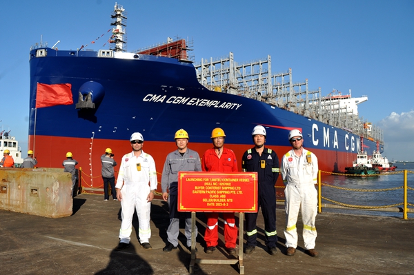 On August 3, 2023, the launching ceremony of two units of 7,000 TEU Container Vessels bearing builder's hull no.0207002 and 0207005 has been carried out successfully by New Times Shipbuilding Co., Ltd. The representatives from EPS site team and ABS classification society attended and witnessed the ceremony together.
