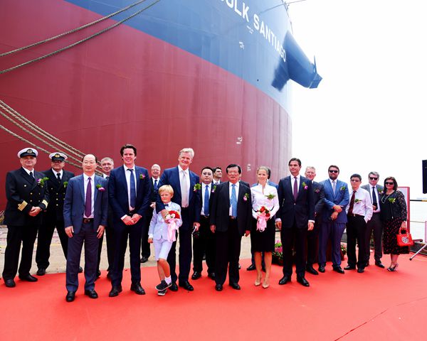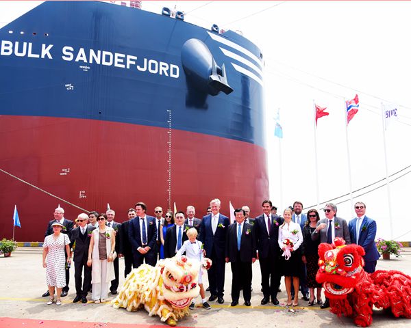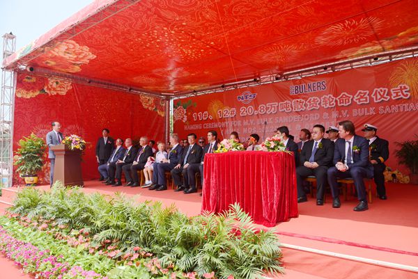 On 7 August, 2019, we held naming ceremony for two units of 208,000 DWT Bulk Carriers with Hull Nos.0120811 and 0120812 that are built for 2020 Bulkers Ltd. Our Chairman Mr. Yuan Kaifei, CEO Mr.Liu Haijin, Board Director Mr. Yuan Heng, Executive General Manger Mr. Zhang Yuyong, Assistant General Manager Mr. Xu Zhenyu, Shareholder of 2020 Bulkers Mr.Olav Midelfart Trøim and CEO of 2020 Bulkers Mr. Magnus Halvorsen, and all other VIP guests were present at this ceremony. Sponsor Mr.Olav Midelfart Trøim named the vessel 0120811 for "Bulk Sandefjord" and Godmother Mrs.Julie Ba Flaaten Halvorsen named the vessel 0120812 for "Bulk Santiago".