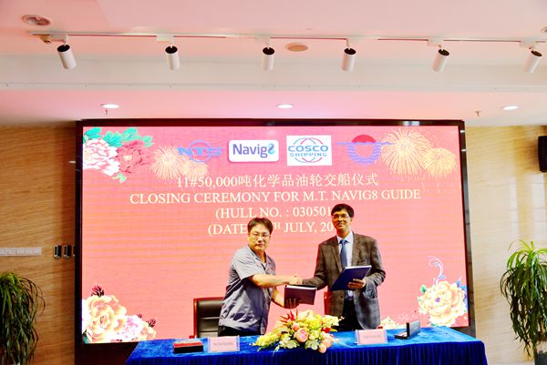 7月18日上午,新建船舶11#50000噸化學品油船正式交付船東。