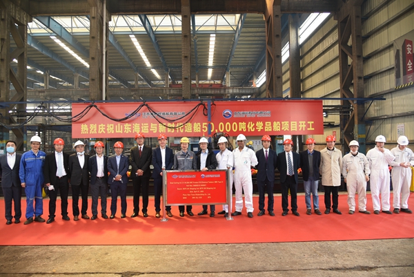 4月27日上午9:00,公司在東區(qū)鋼加車間舉行開工點火儀式,兩艘50000噸化學(xué)品船正式開工。公司總經(jīng)理劉海金、常務(wù)副總經(jīng)理張玉永、副總經(jīng)理朱韓鋼與船東山東海運公司代表、船級社DNV-GL/CCS代表等嘉賓共同出席活動。