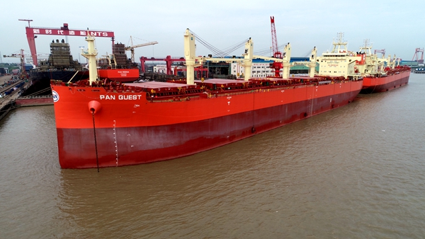韓國(guó)船東Pan Ocean Co., Ltd.在我們企業(yè)共訂制了3艘63500噸散貨船,今天交的是該系列船舶的第二艘。