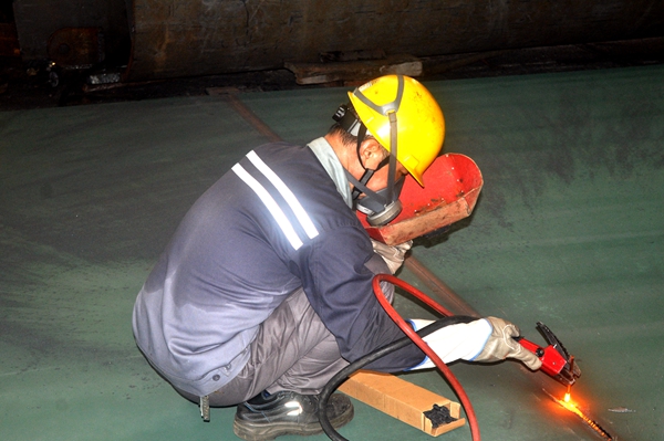 進(jìn)入生產(chǎn)車間,映入眼簾的是一張張汗如雨下的面孔,其次看到的是有條不紊的生產(chǎn)景象,廠房作業(yè)區(qū)內(nèi)環(huán)境,僅室內(nèi)溫度就有40℃左右,每一位員工身上衣服如同水洗,但高溫始終未影響新時代造船員工的工作熱情,只看他們動作麻利,操作謹(jǐn)慎,嚴(yán)格工藝流程要求操作,把握好各個細(xì)小環(huán)節(jié),確保每一個成品的質(zhì)量,用實際行動展示著“戰(zhàn)高溫 斗酷暑 守崗位 促生產(chǎn)”的錚錚誓言。工服上的坨坨汗?jié)n,臉上快速流淌的汗水,就是他們實現(xiàn)自我價值的有力證明,他們是可敬可贊的,與烈日高溫比熱情,用忠誠執(zhí)著促生產(chǎn),用辛勤汗水書寫著新時代造船人別樣的美。