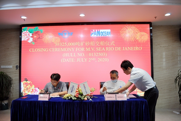 7月2日上午,公司在八樓會(huì)議室舉行簽字交船儀式,3#325000噸超大型礦砂船正式交付船東。