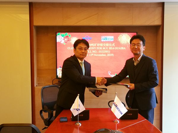 11月12日,公司在上海舉行簽字交船儀式,常務(wù)副總經(jīng)理張玉永與韓國(guó)船東泛洋海運(yùn)公司代表共同簽署交船文本,名為“SEA GUAIBA”號(hào)的325000噸超大型礦砂船正式交付船東。