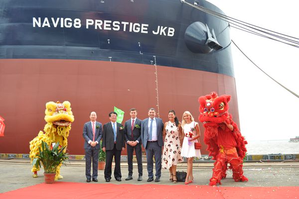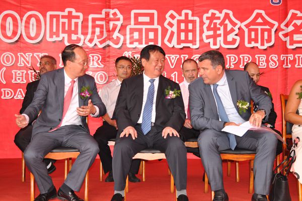 8月13日上午,公司在新區(qū)碼頭舉行隆重命名儀式,為16#111000噸油船命名。董事長(zhǎng)袁凱飛、總經(jīng)理劉海金與船東Navig8公司代表Gary