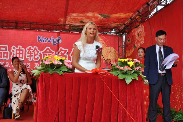 Brocklesby一家人、ABS船級(jí)社代表等嘉賓出席活動(dòng),常務(wù)副總經(jīng)理張玉永主持儀式,圣母Jodie小姐將16#111000噸油船成功命名為“Navig8