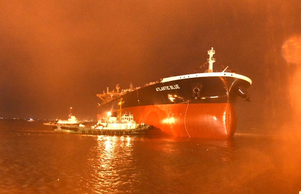4日清晨,公司1#塢區(qū)域,廣大員工冒著大雨,有序開展船舶下水工作,隨著海事拖輪緩緩發(fā)力,25#111000噸油船駛離船塢,順利下水。下午4點,3#63500噸散貨船也順利實現(xiàn)下水目標(biāo)。
