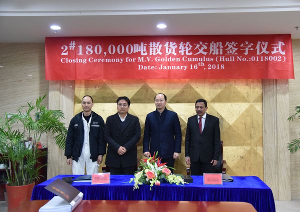 1月16日上午,公司建造的2#180000噸散貨船交付船東。