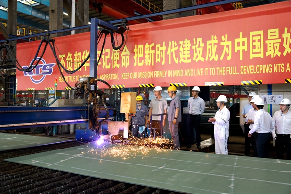 8月31日上午,公司在東區(qū)鋼加車間舉行船舶開工點火儀式,24#、25#50000噸成品油船/化學品船同時開工建造,副總經(jīng)理朱韓鋼與船東山東海運公司代表共同出席儀式。