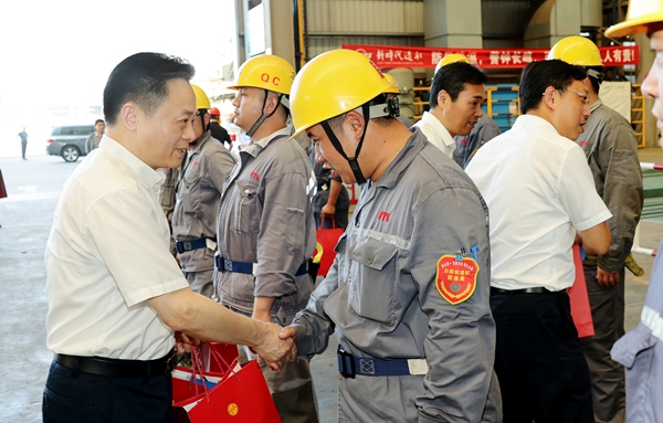 申強(qiáng)一行來(lái)到智能化分段車(chē)間,與現(xiàn)場(chǎng)員工親切交流,詢問(wèn)工作時(shí)間、防暑措施等情況,將防暑降溫用品送到一線員工手中,并叮囑大家注意健康防護(hù),注意勞逸結(jié)合,落實(shí)防暑降溫措施,為企業(yè)多做貢獻(xiàn)。
