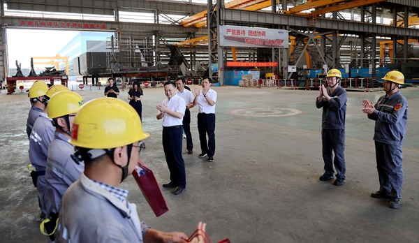 走訪慰問(wèn)過(guò)程中,總經(jīng)理劉海金詳細(xì)介紹了當(dāng)前生產(chǎn)經(jīng)營(yíng)、重大項(xiàng)目推進(jìn)、安全生產(chǎn)管理等情況,企業(yè)針對(duì)夏季安全生產(chǎn)規(guī)律和特點(diǎn),積極落實(shí)落細(xì)安全防護(hù)和防暑降溫措施,不斷提升安全生產(chǎn)管理水平,筑牢安全防線,在充分確保安全生產(chǎn)的前提下?lián)寱r(shí)間、趕訂單、保交付,努力為船舶產(chǎn)業(yè)升級(jí)轉(zhuǎn)型、地方經(jīng)濟(jì)高質(zhì)量發(fā)展作出新的貢獻(xiàn)。申強(qiáng)強(qiáng)調(diào),企業(yè)要深入踐行以人民為中心的發(fā)展思想,以“時(shí)時(shí)放心不下”的責(zé)任感做好高溫期間安全防范工作,進(jìn)一步壓實(shí)責(zé)任、細(xì)化舉措,以“事事落實(shí)到位”的執(zhí)行力織密織牢安全防護(hù)網(wǎng),更好守護(hù)一方平安、確保安然度夏。