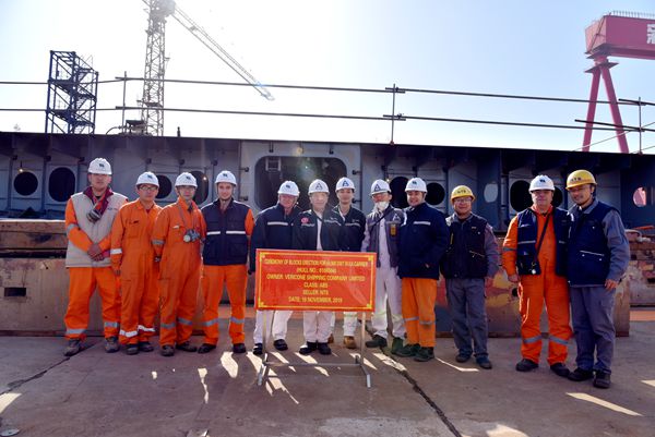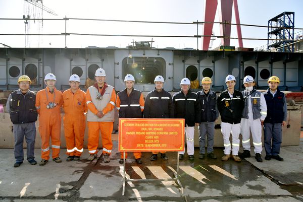 11月20日上午,公司副總經(jīng)理朱韓鋼與3#、4#65000噸散貨船的船東代表、船級(jí)社代表等嘉賓共同出席兩艘船舶船體進(jìn)塢合攏儀式,兩船船體合攏組裝工作正式啟動(dòng)。