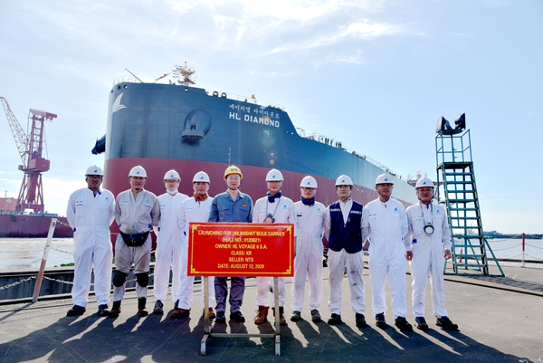 韓國船東H-Line Shipping Co., Ltd.在我們公司訂制了5艘208000噸散貨船,此次下水的是系列船中的第一艘和第二艘。