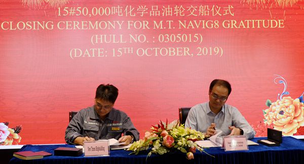 15#50000噸化學(xué)品油船簽字交付(圖)